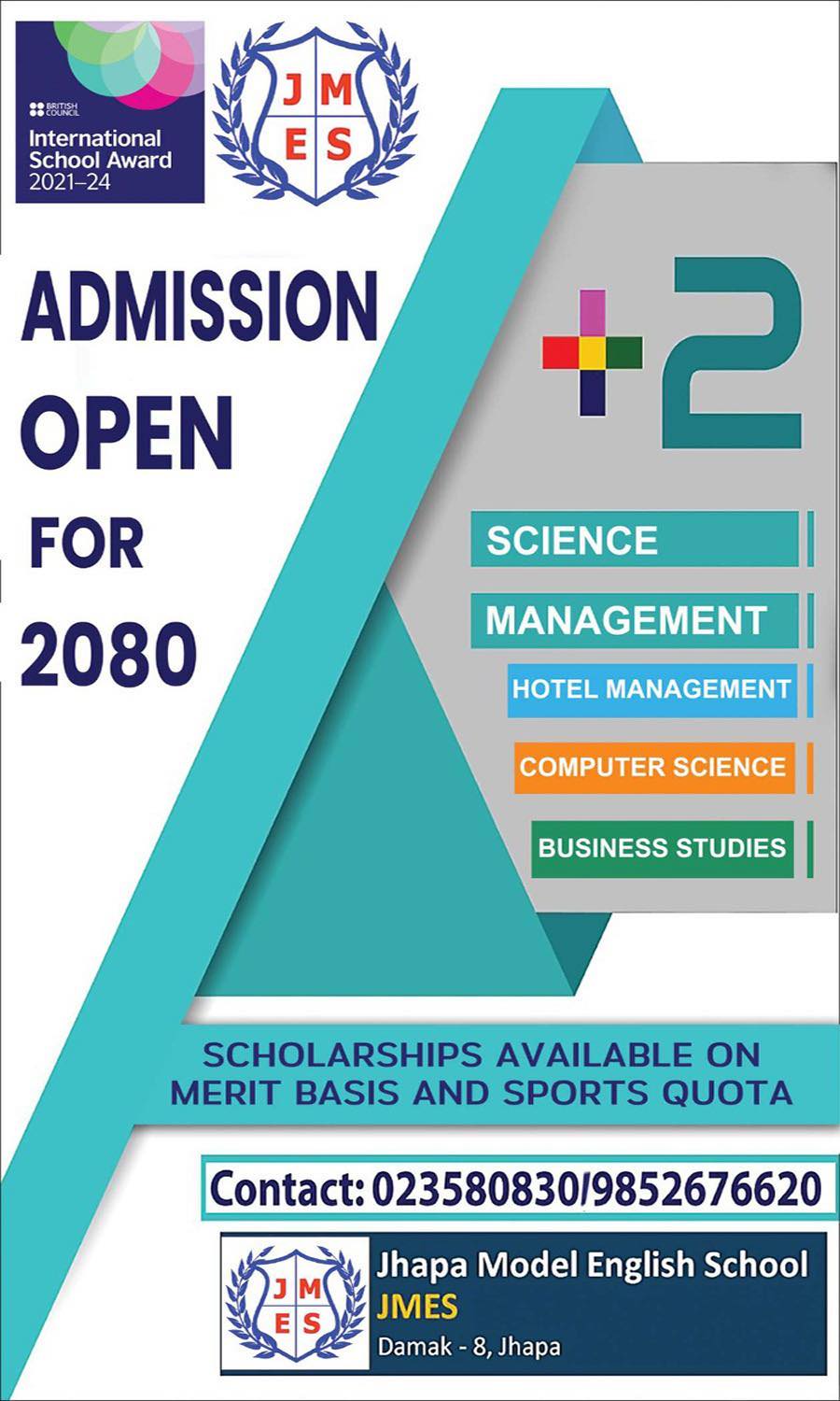 झापा मोडल ( जेम्स ) ले यस वर्ष खेलकुद कोटा Sports Quota फूटवल, भलिवलबाट पनि उत्कृष्ट विद्यार्थी छनोट गरी छात्रवृत्ति प्रदान गर्ने व्यवस्था गरेको छ । ( प्रवद्र्धनात्मक सामग्री)