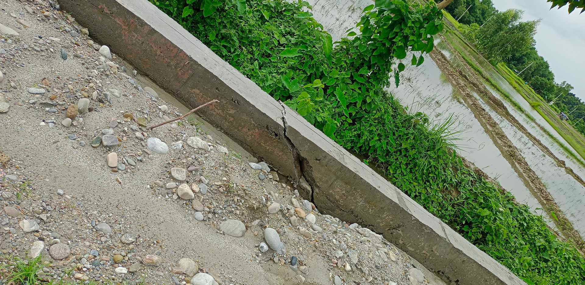 त्यसैगरी दमकको वडा नं २ स्थित देवीथान मार्गको किनारमा बनाईएको रिटेनिङ वाल गुणस्तरहीन हुँदा भत्किएको छ ।