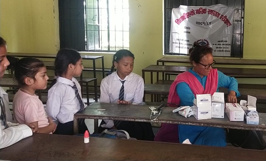 कमल नगर अस्पतालका जनस्वास्थ्य निरीक्षक दिपक प्रसाद दहाल, सि.अ.न.मि. निरीक्षक इमानसरी राई, र अ.न.मि. अन्जना सापकोटा लगायतको टोलीले विद्यालयमै पुगेर विद्यार्थीहरूको स्वास्थ्य परीक्षणसँगै स्वास्थ्य परामर्श प्रदान गरेको जनाइएको छ । स्वास्थ्य परिक्षणका सिलसिलामा बालबालिकाहरूमा रुघाखोकी, टाउको दुखाइ, पेट दुख्ने, आँखा, दाँत र कानका समस्या, ज्वरो, पोषण सम्बन्धी समस्याहरु देखिएका छन् ।