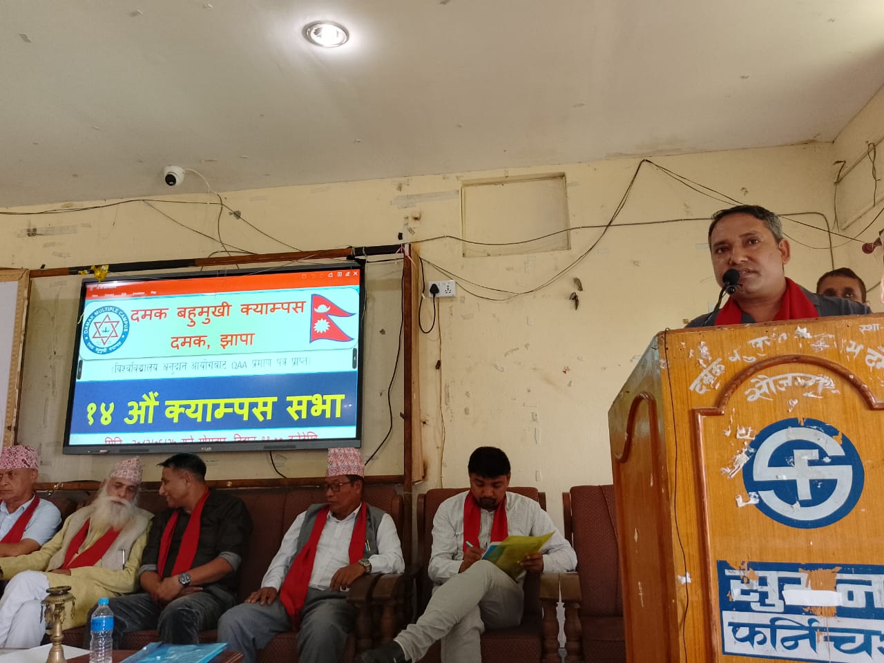 दमक/ उच्च शिक्षाका लागि सामुदायिकस्तरबाट स्थापना गरिएको दमक बहुमुखी क्याम्पस दमकको १४ औं क्याम्पस सभा सोमबार सम्पन्न भएको छ ।