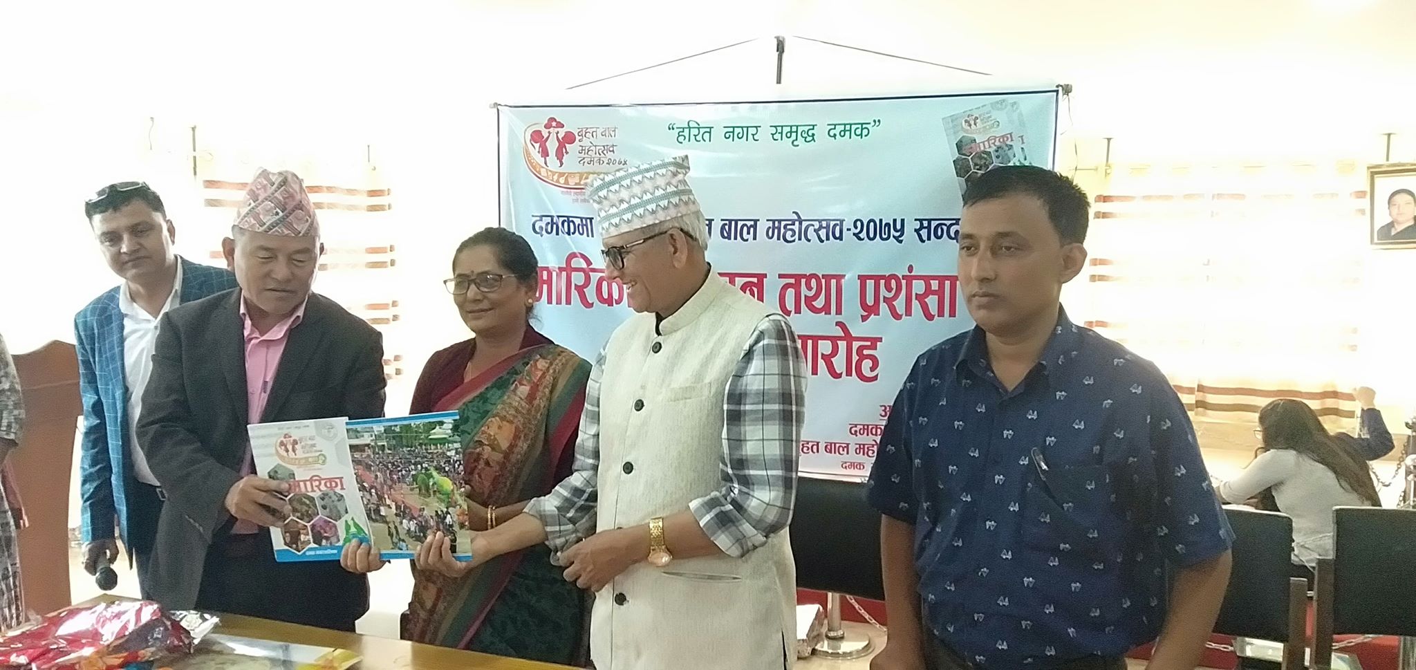 बाल महोत्सव २०७५को स्मारिकाका रुपमा प्रकाशन गरिएको सो पुस्तकको आज प्रदेश सभा सदस्य अर्जुन राई, दमक नगरपालिकाका प्रमुख रोमनाथ ओली र उपप्रमुख एवम् महोत्सव आयोजक मुलक समिति संयोजक गीता अधिकारीले संयुक्त रुपमा विमोचान गर्नुभएको छ ।