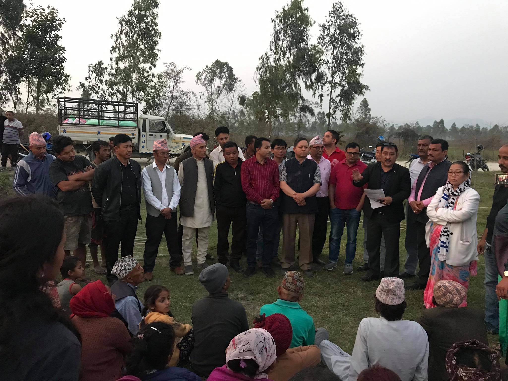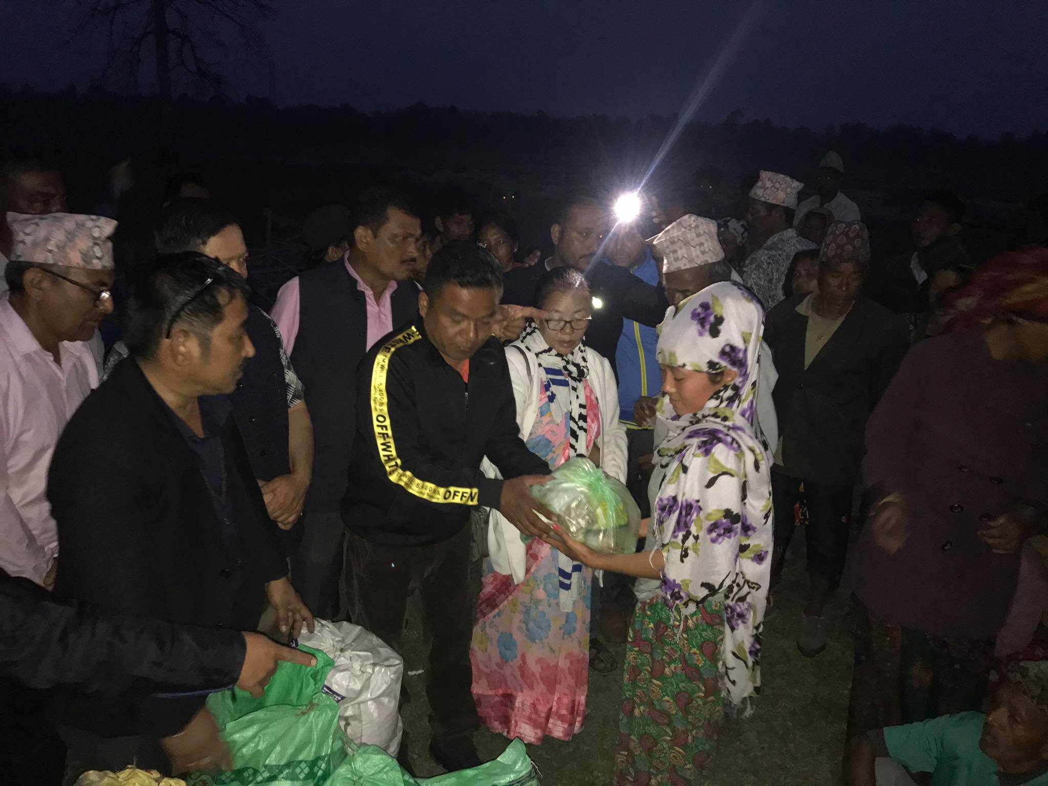 नेपाली कांग्रेस, समाजवादी पार्टी, राप्रपा, संघीय लोकतान्त्रिक लिम्बुवान मञ्च, राष्ट्रिय जनमुक्ति पार्टी र माओवादी क्रान्तिकारीको संयुक्त गठबन्धनले त्यहाँ सशस्त्र प्रहरीद्धारा घर भत्काएर विस्थापित बनाइएका ५९ परिवारलाई प्रति परिवार २५ केजी चामलसहित खानेतेल, सोयाबिन आदिको खाद्य सामाग्री सेट प्रदान गरेको हो ।