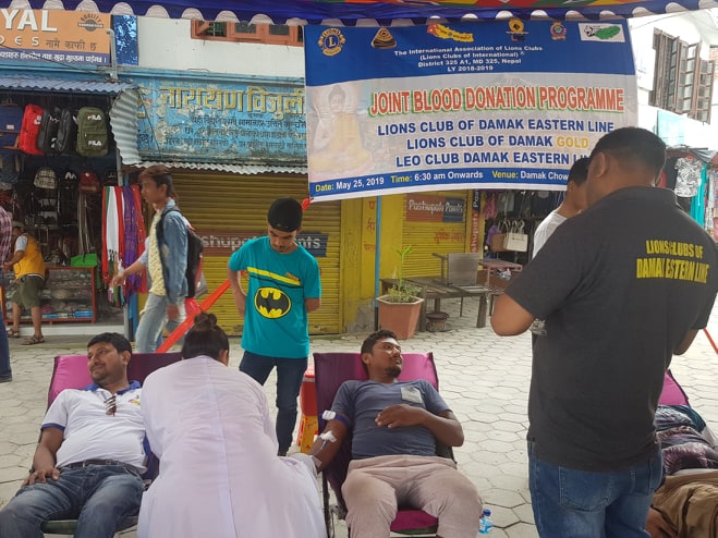 दमक/झापाको दमकमा आज तीन वटा लायन्स क्लबहरुले संयुक्त रुपमा आयोजना गरेको रक्तदान कार्यक्रममा ३ महिलासहित ५४ जनाले रक्तदान गरेका छन्
