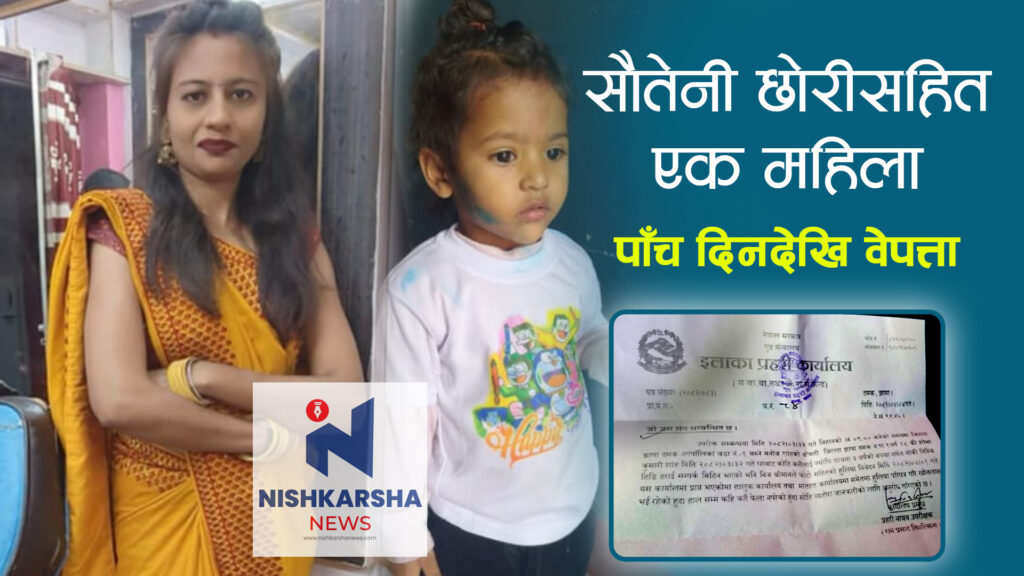 दमक/ झापाको दमक १ सैनिक चोकबाट एक जना नवविवाहित महिला अढाई बर्षिया नाबालिकासहित वेपत्ता भएकी छिन् । सो ठाउँका मनोज