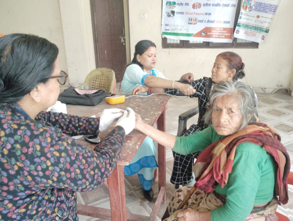दमक/ बढ्दो जीवनशैलीसम्बन्धी रोगहरूको जोखिम न्यूनीकरण गर्दै नागरिकलाई समयमै उपचारको पहुँचमा ल्याउने उद्देश्यसहित कमल गाउँपालिका–७ मा नसर्ने रोगसम्बन्धी स्वास्थ्य परीक्षण