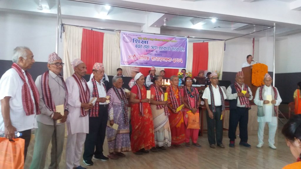 दमक/ दमक –६ स्थित शिखा बचत तथा ऋण सहकारी संस्थाको ८ औं बार्षिक साधारण सभाका अवसरमा १३ जना ज्येष्ठ शेयर