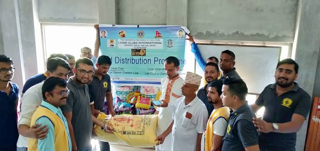 दमक/लायन्स क्लब अफ दमक इष्टर्न लायन र युनाइटेडले संयुक्त रुपमा आज दमकको कृष्णमन्दिरस्थित वशिष्ट गुरुकुलका विद्यार्थीहरुका लागि खाद्यन्न सामग्री सहयोग