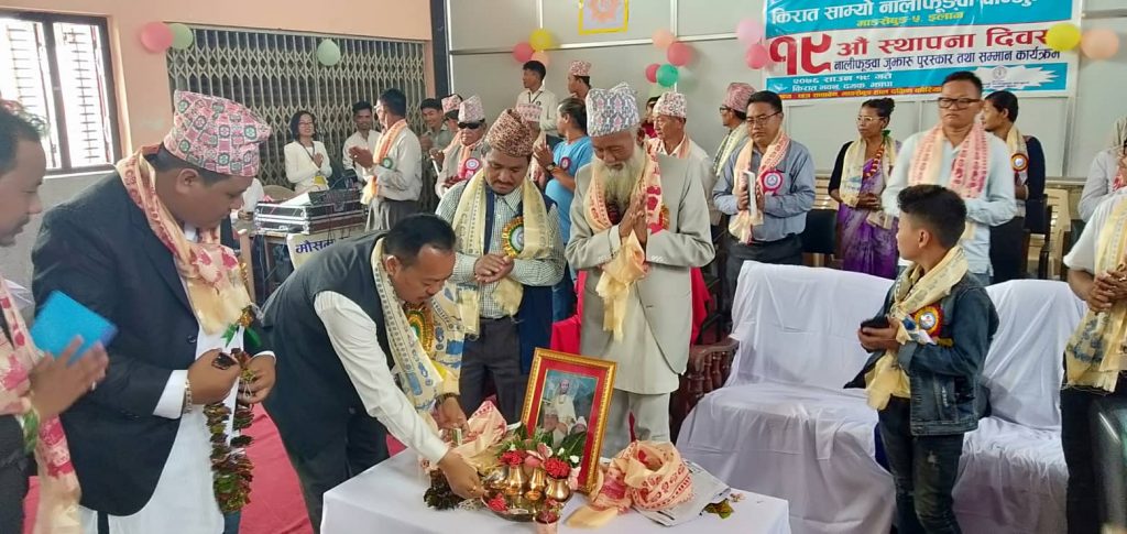 दमक/ किराँती युवाहरु आवद्ध संस्था किराँत साम्यो नालिफुङवा पान्जुम्भो माङसेबुङ ५ इलामले १९ औं स्थापना दिवस आज मनाईरहेको छ ।