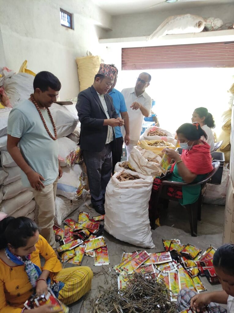 कमल/ प्रदेश १ का कृषि मन्त्रि झलकसिंह दर्लामीले झापाको कमल गाँउपालिका वडा नं. ६ मा रहेको पुजा सामग्री उत्पादन गर्ने